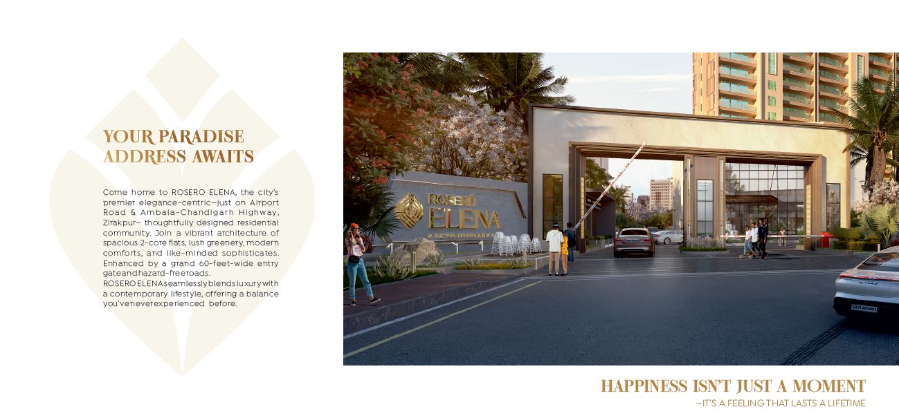 ROSERO ELENA, one of the luxurious residential 3 BHK Apartments close to Ambala Chandigarh Highway and Near Airport Road Zirakpur Mohali.